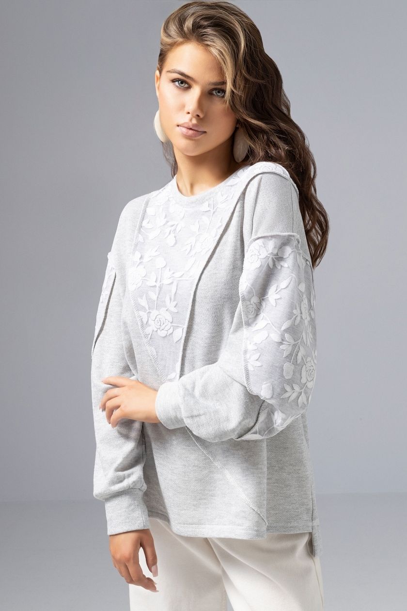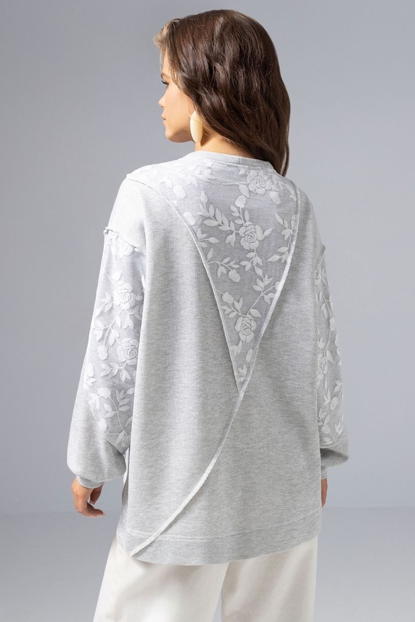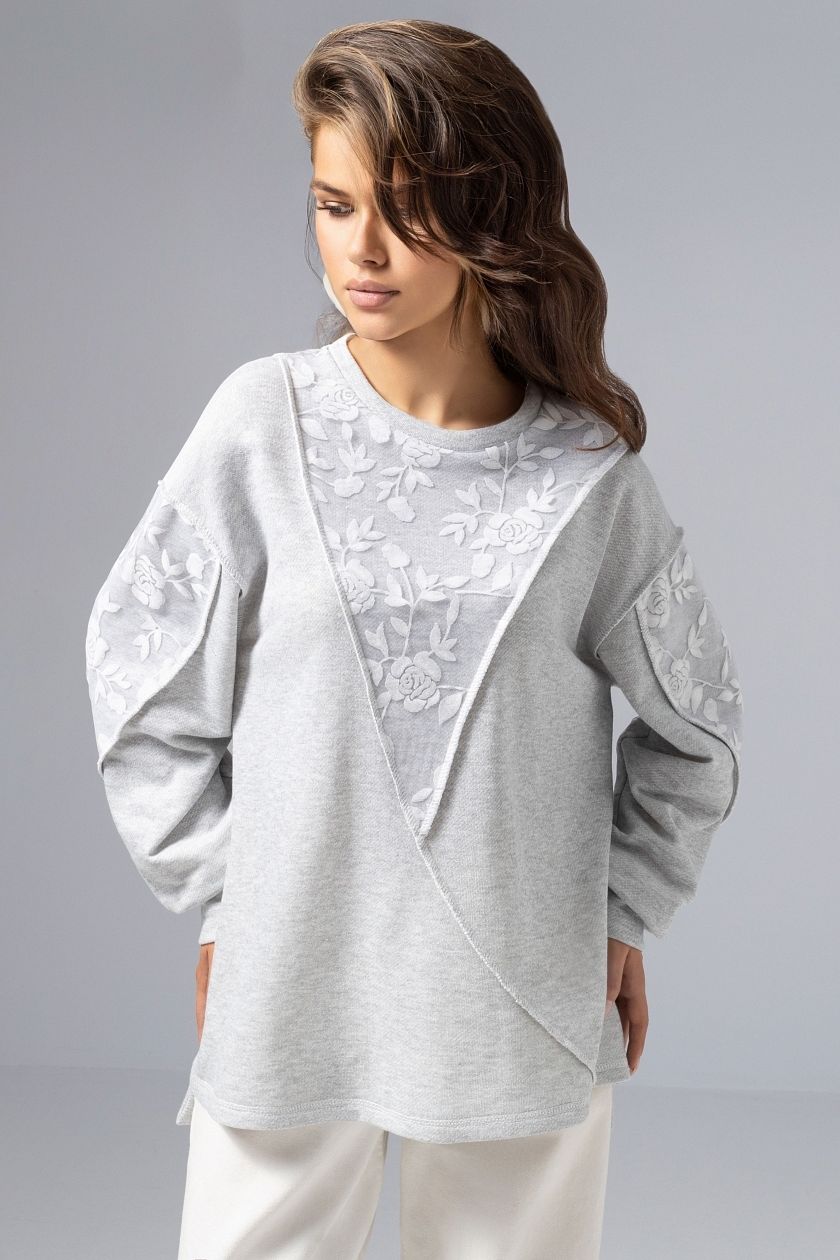 Свитшот комбинированный серый с кружевом