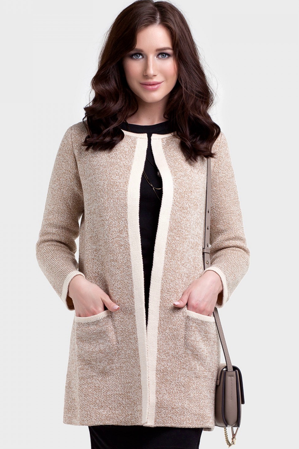 Кардиган без застёжки бежевый с карманамиАртикул: УВ-3650_бежевый -