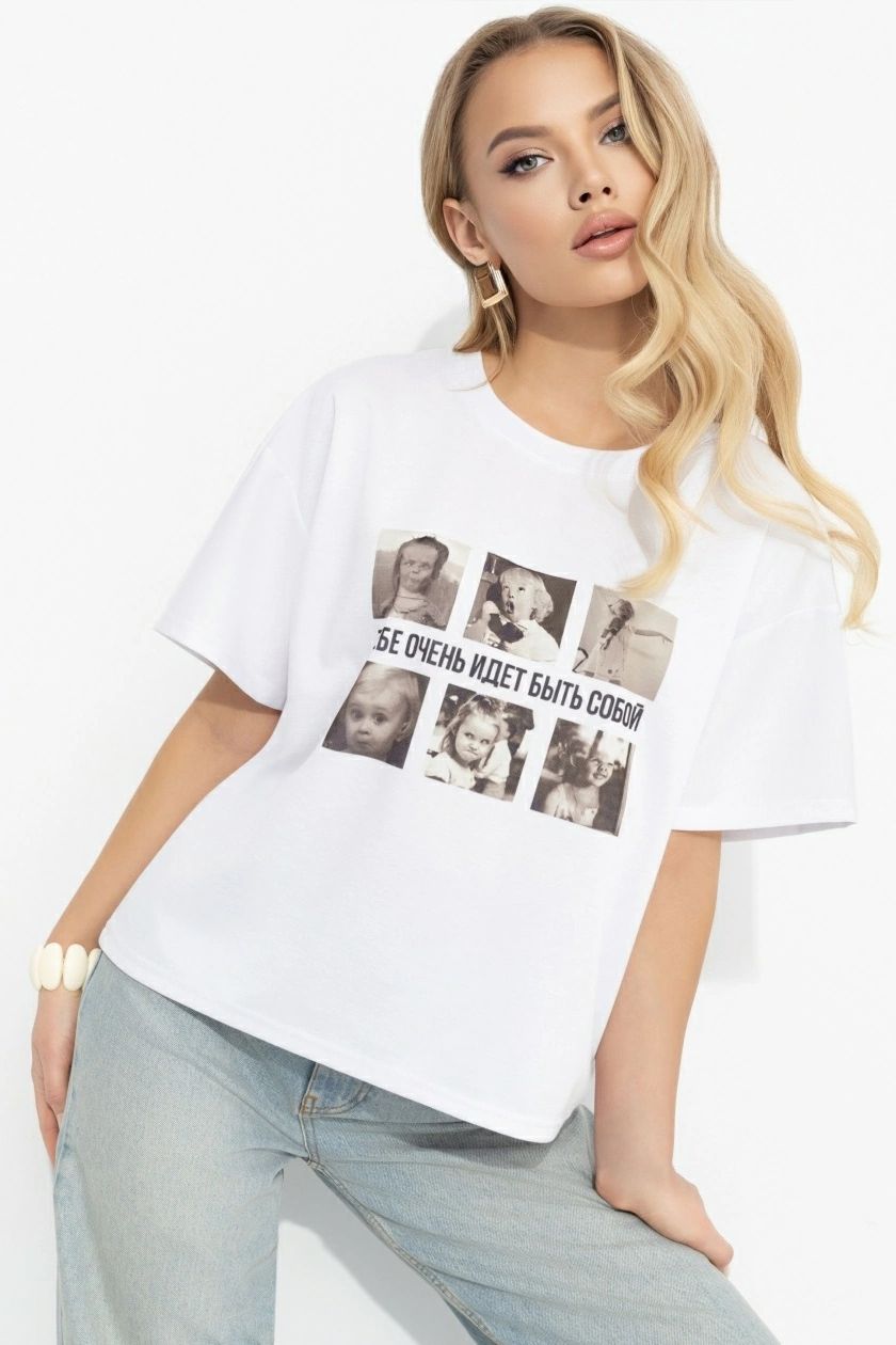 Футболка белая из трикотажаАртикул: CH-Всегда нарядна (восхищение) -