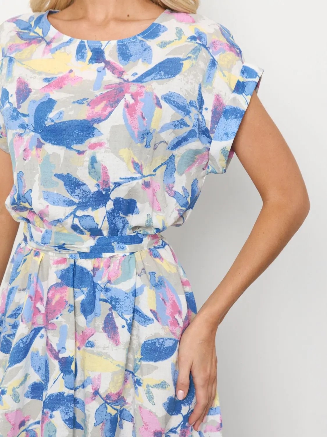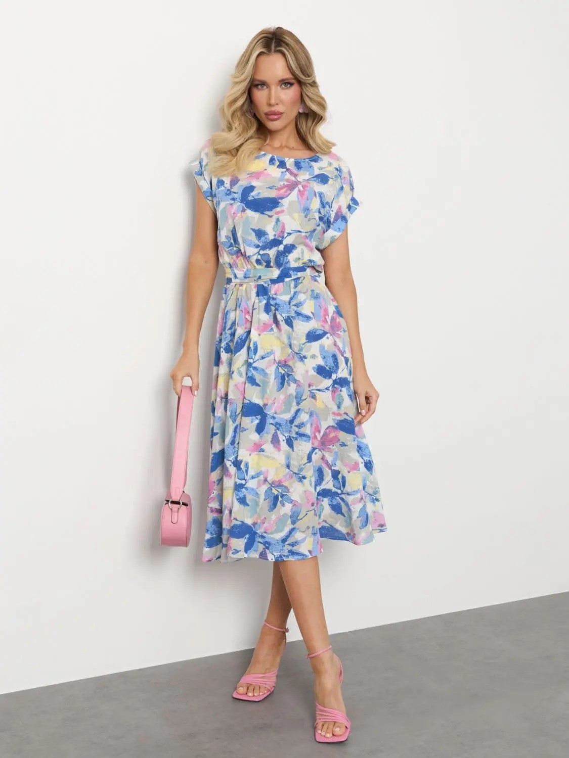 Платье миди с принтом от производителя Jetty, выполнено из хлопка. Модельс отрезным поясом. Пояс на внутренней резинке. В комплект идет пояс в цвет платья. Низ изделия расклешенный. Короткий цельнокроеный рукав с отворотом. Идеальный выбор на каждый летний день.