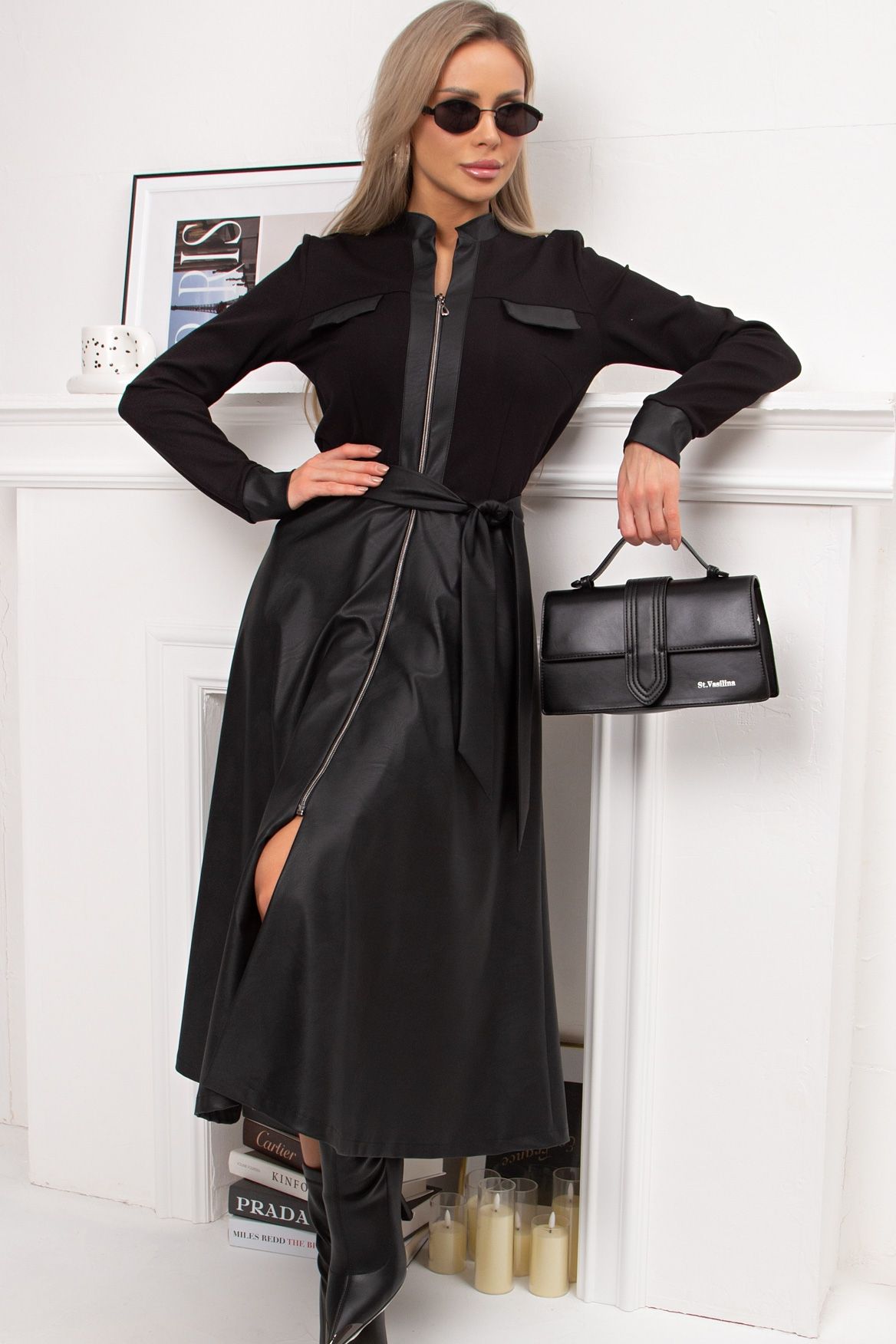 Платье чёрное комбинированное с поясом Джери №1Артикул: Val-42063-1 Джери -