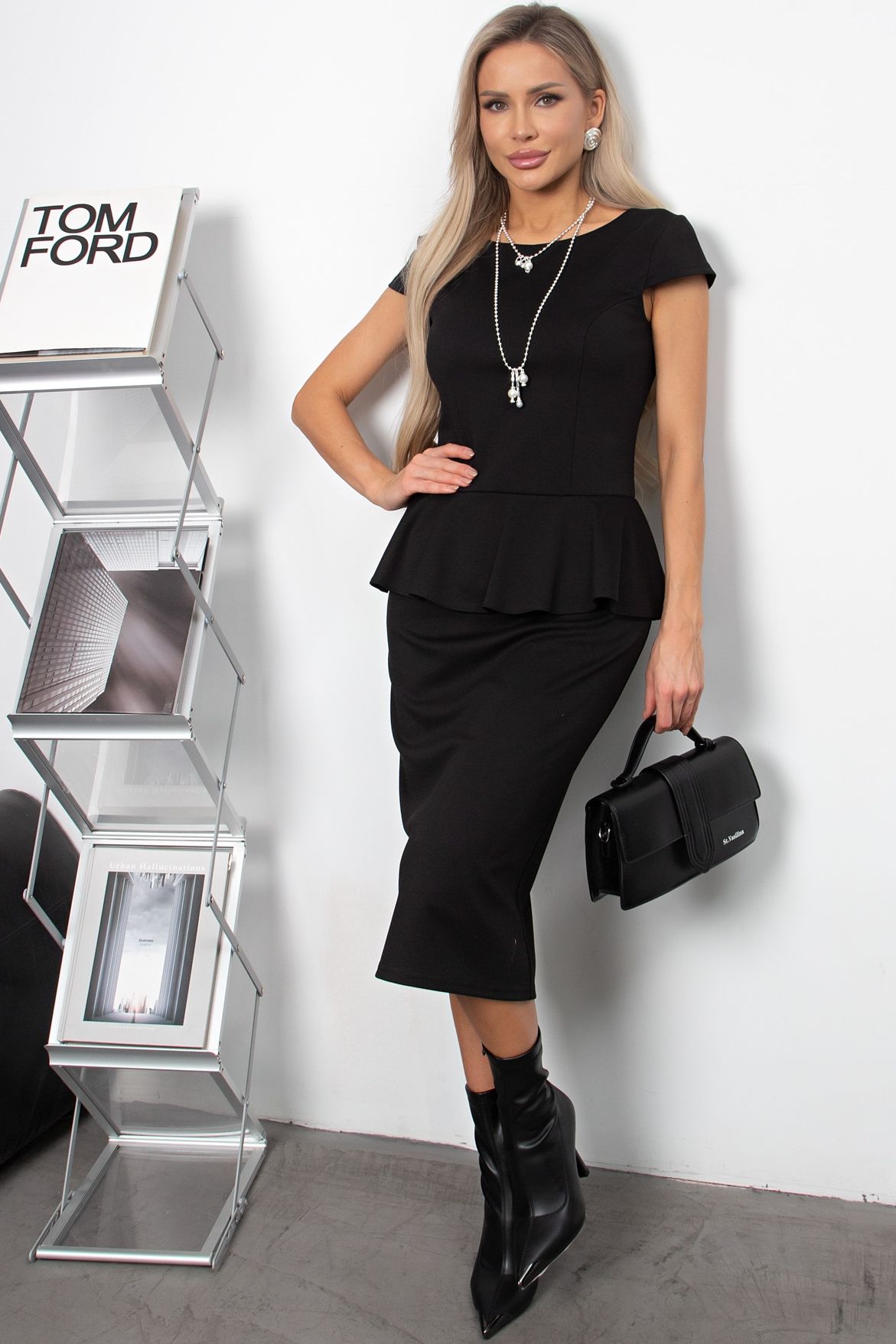 Платье трикотажное чёрное с баской Торри №1Артикул: Val-42068-1 Торри -