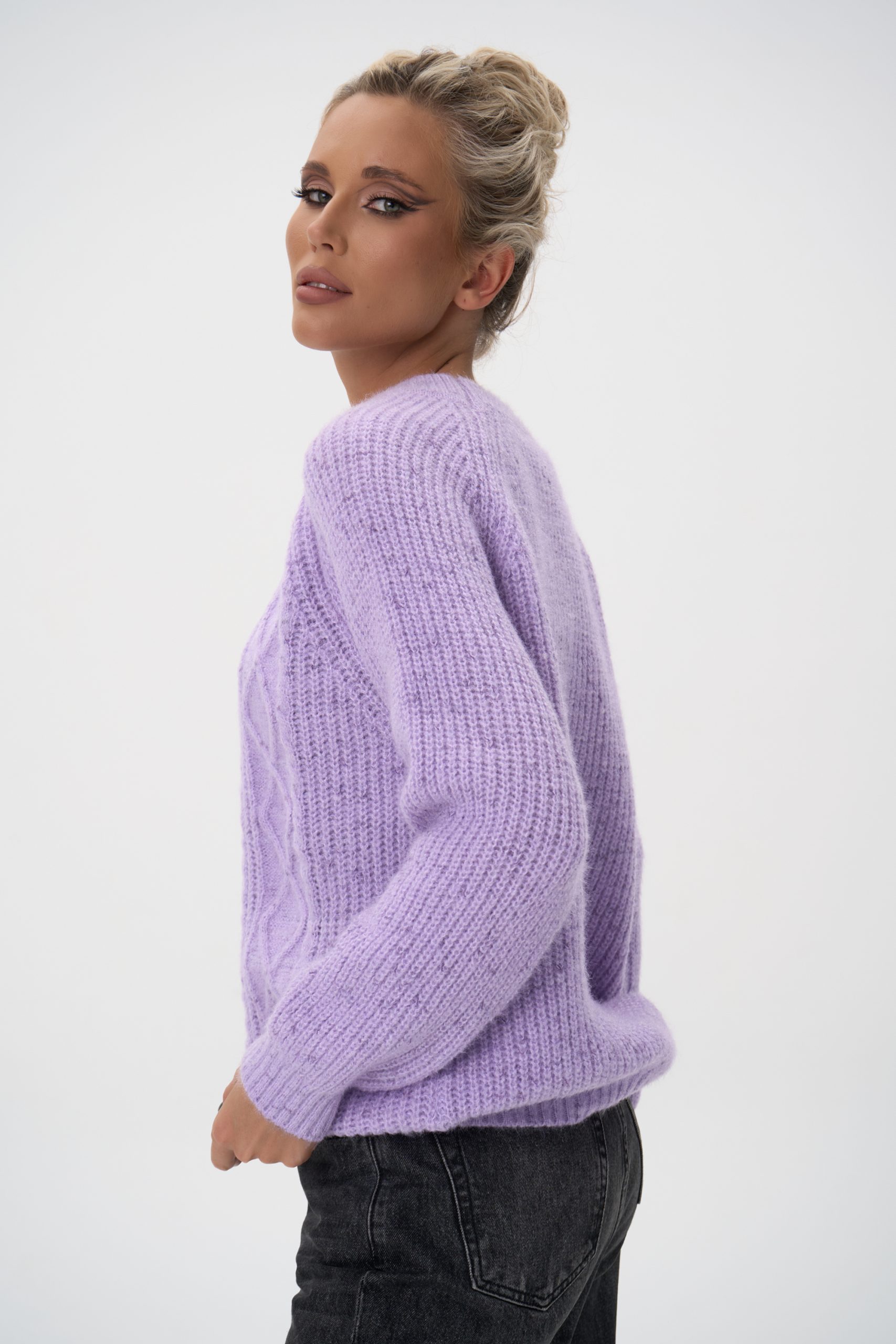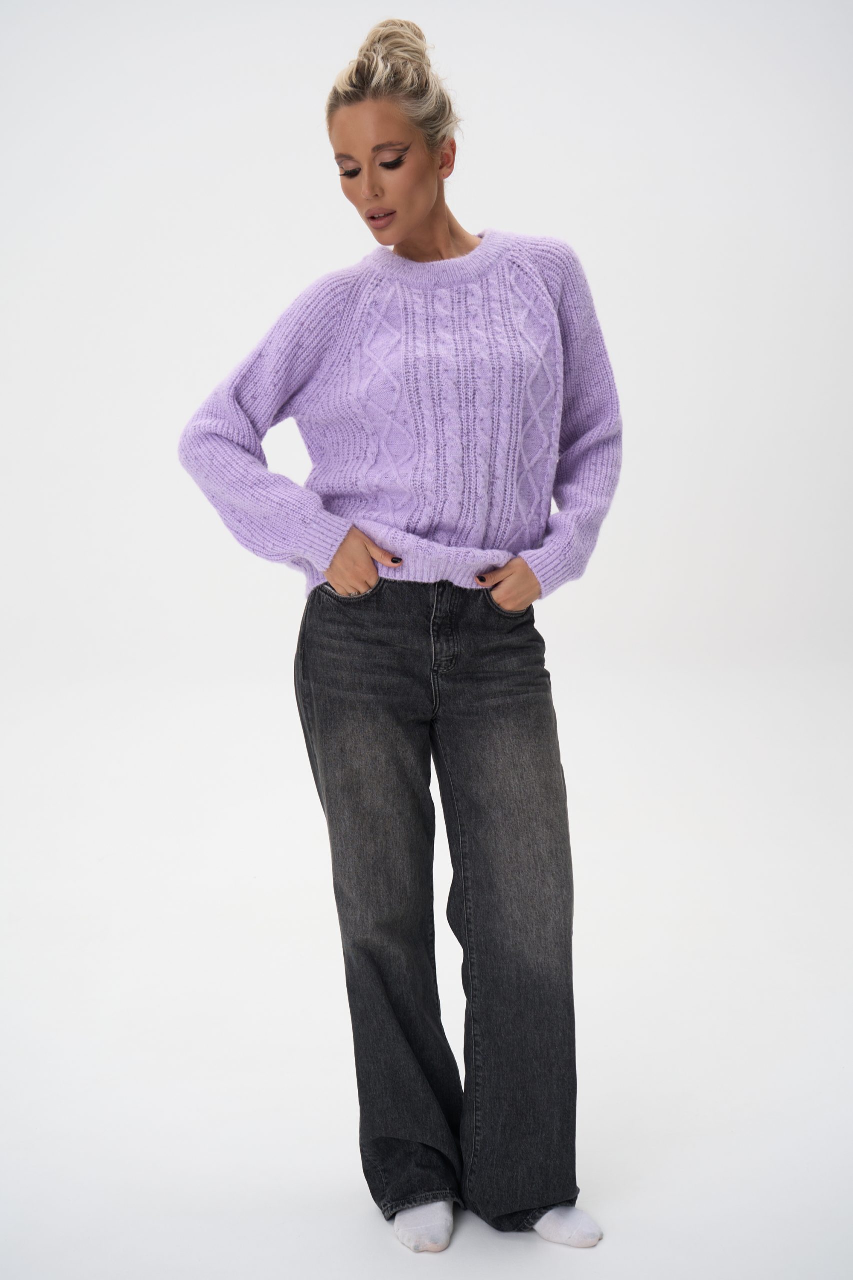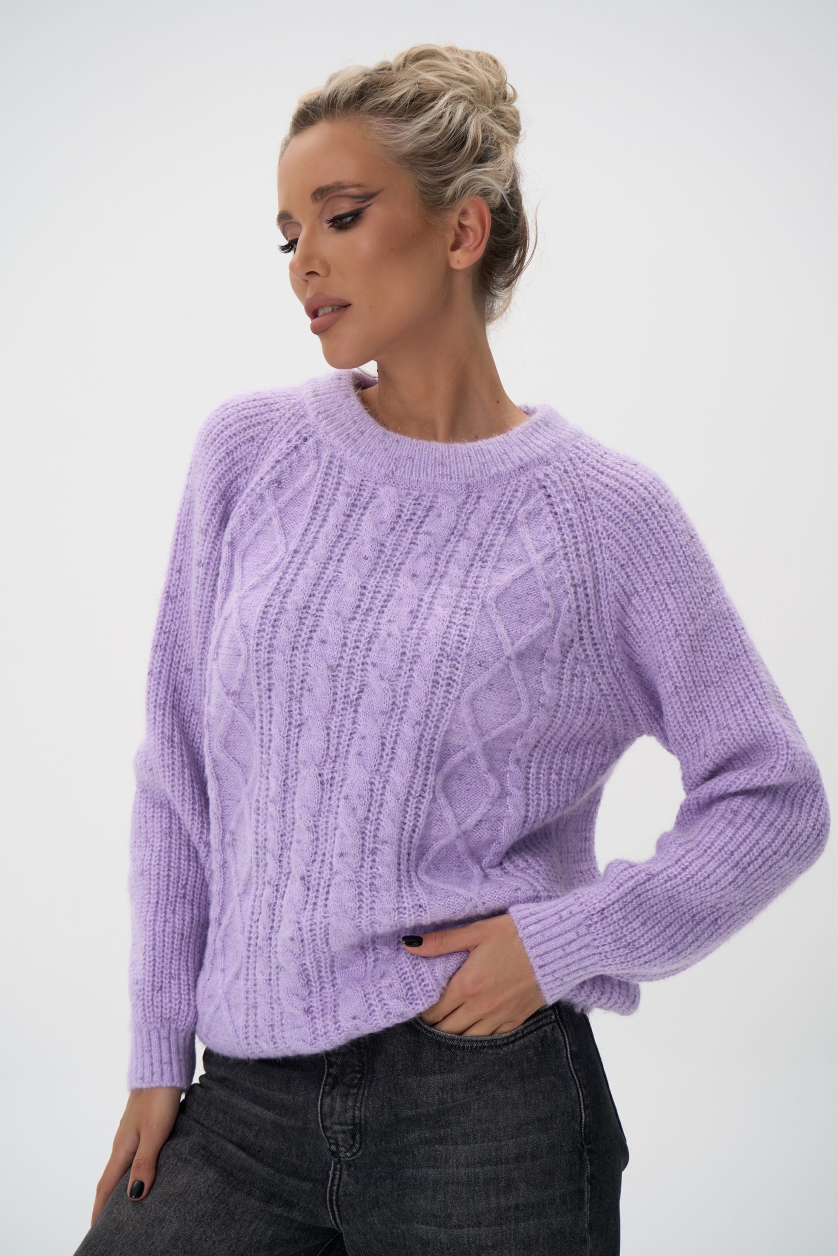 Свитер вязаный с фактурным вязаным узором