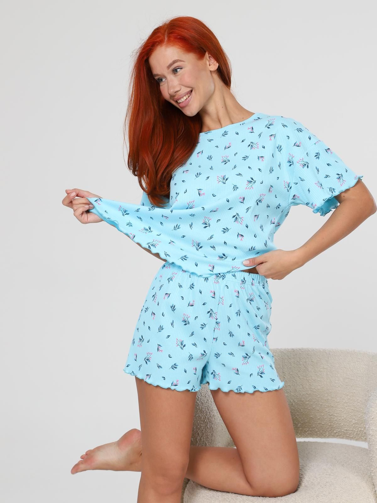 Пижама трикотажная с шортами от бренда Iv-capriz. Футболка свободного покроя со спущенной линией плеча, короткими втачными рукавами, горловиной овальной формы, обработанной втачной планкой. Нижние срезы рукавов и низ изделия обработаны узкой обметочной строчкой, создающей красивый волнистый край. Шорты средней длины с цельнокроенным поясом с эластичной лентой. Нижние срезы шорт обработаны узкой обметочной строчкой, создающей красивый волнистый край. Идеальный вариант для комфортного сна.