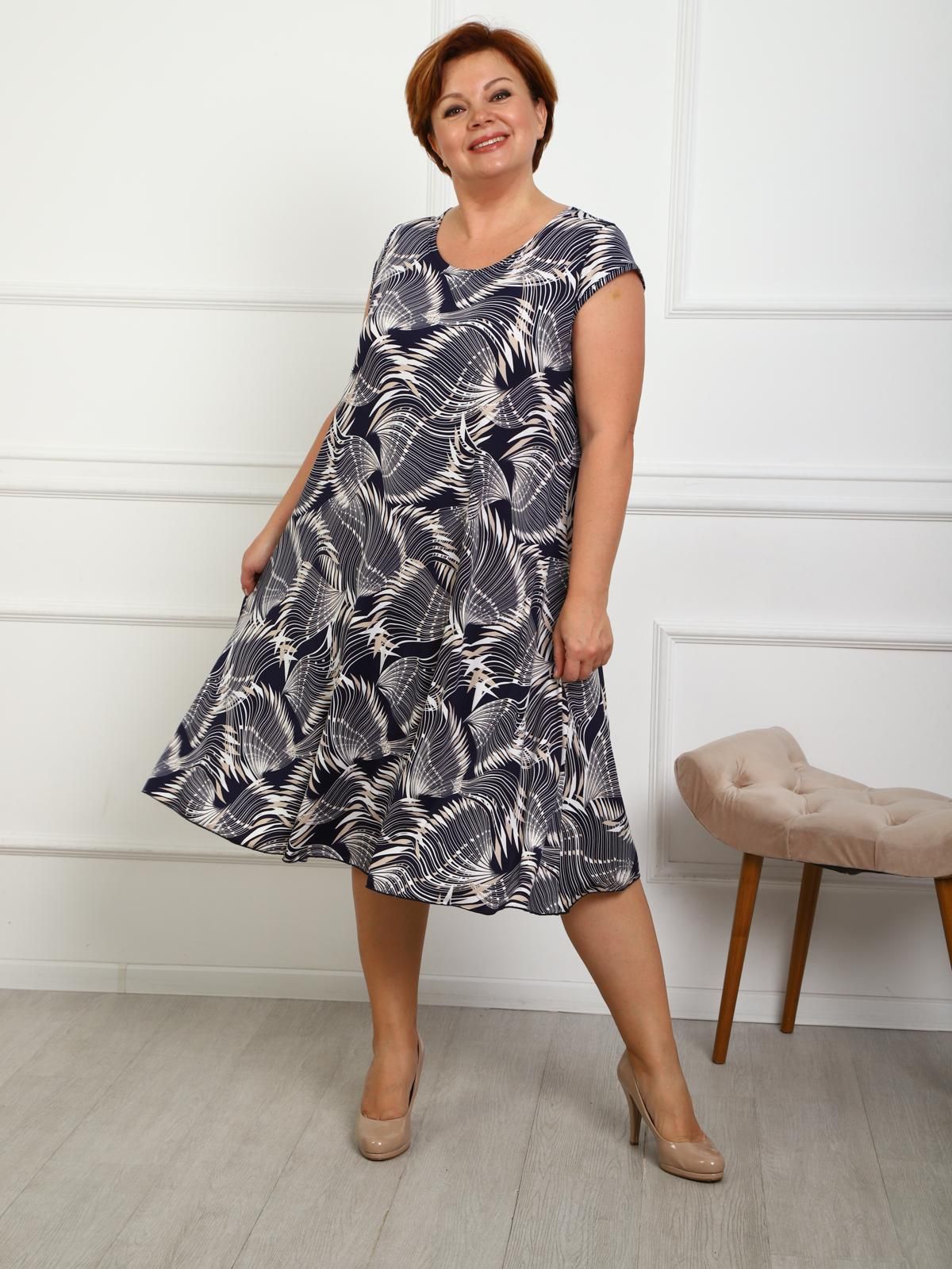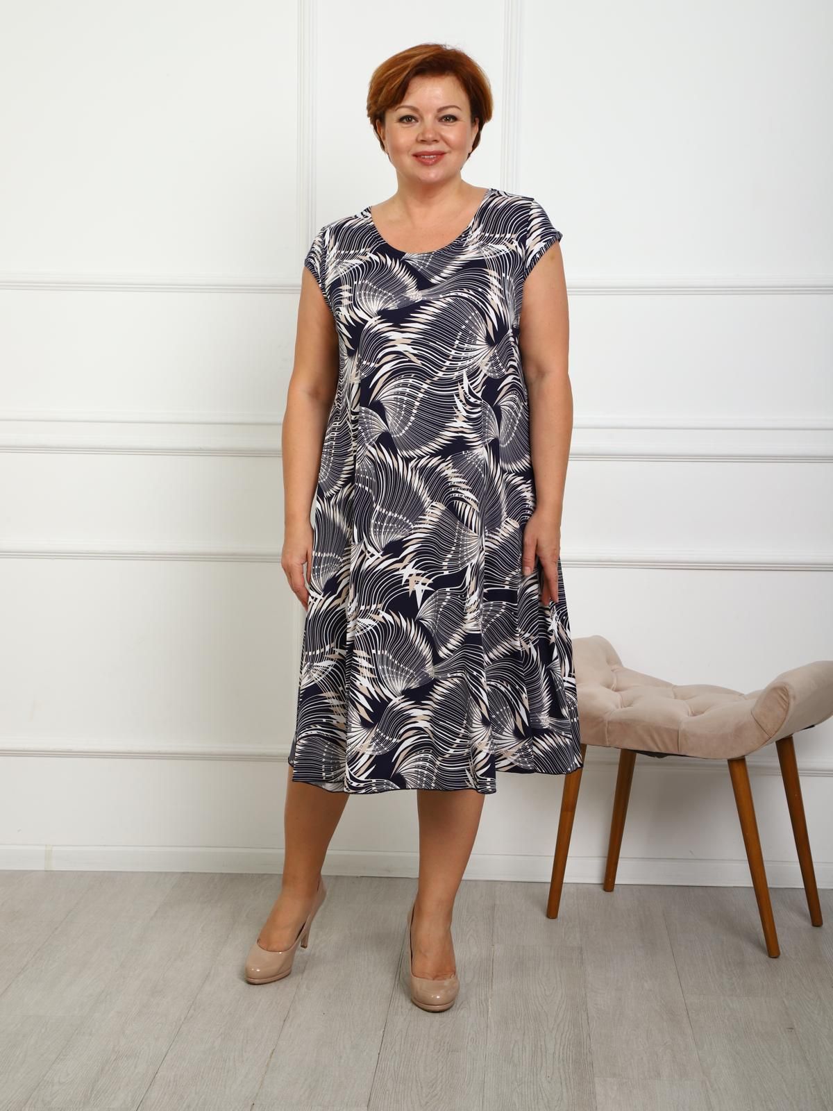 Платье трикотажное с принтом от бренда IV-Capriz. Модель свободного кроя выполнена из полотна масло. Круглый вырез горловины. Короткие рукава. Идеальный выбор на каждый день.