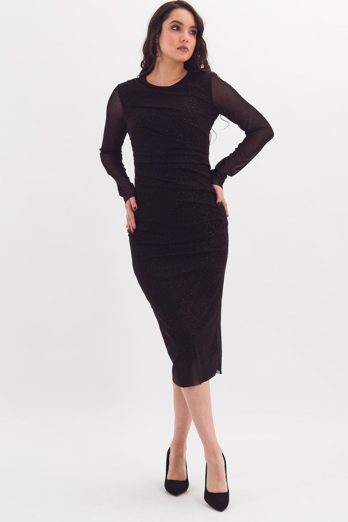 Платье миди чёрного цветаАртикул: LAVI-Милена блеск чёрный / светло-золотистый -