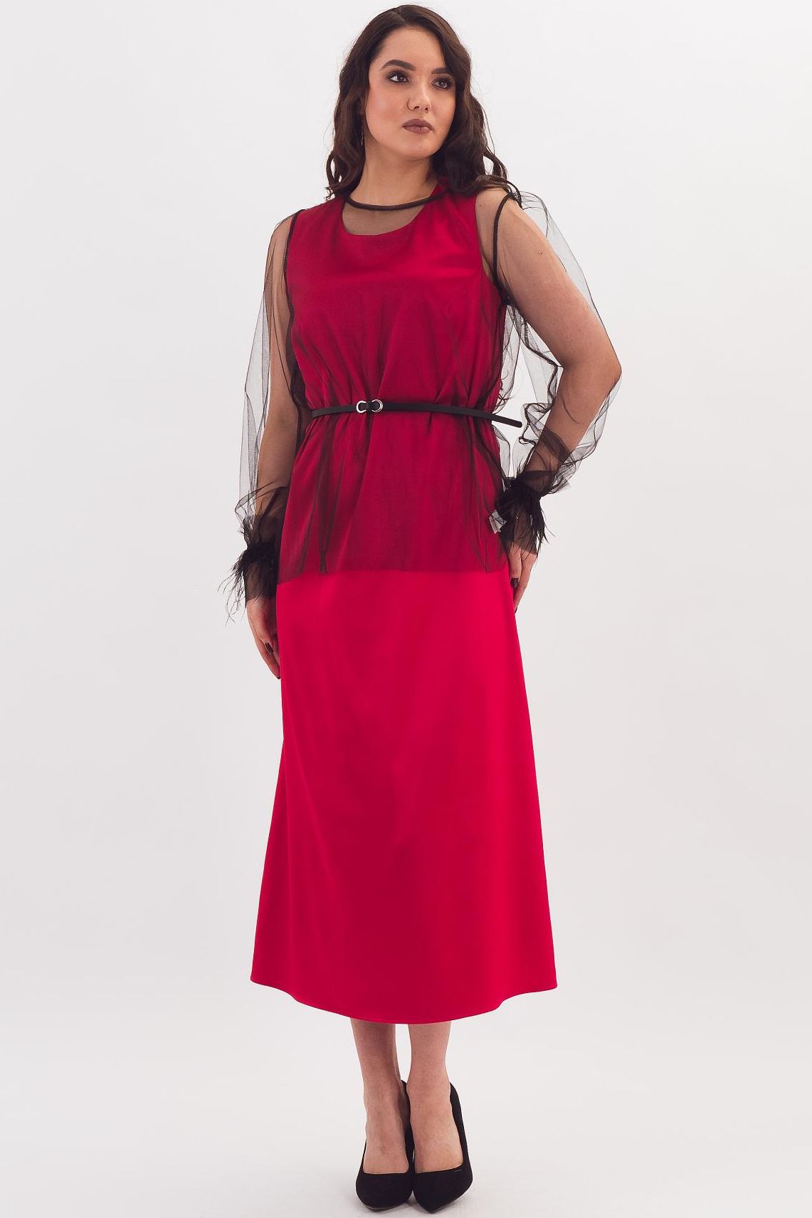 Платье длинное трикотажное красное с акцентными рукавамиАртикул: Za-Ирма (красный) -