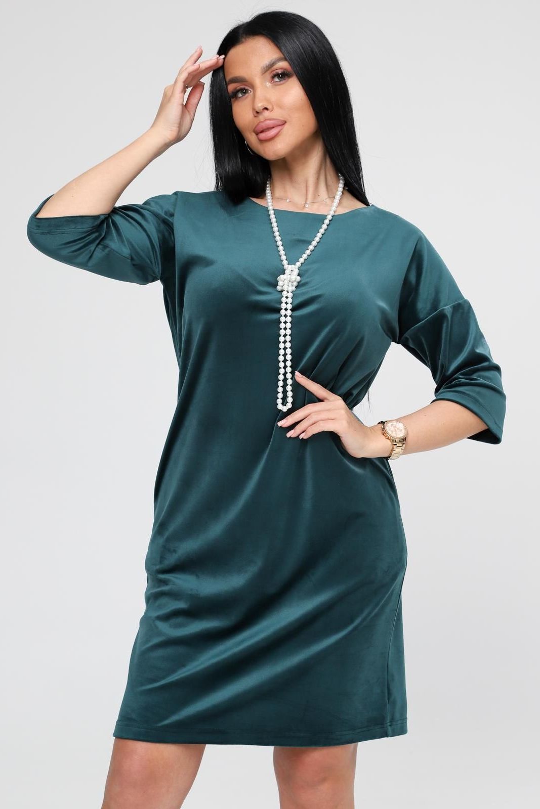 Платье велюровое изумрудного цвета с карманамиАртикул: Capriz-D1800006199 Дарвиния-платье изумруд -