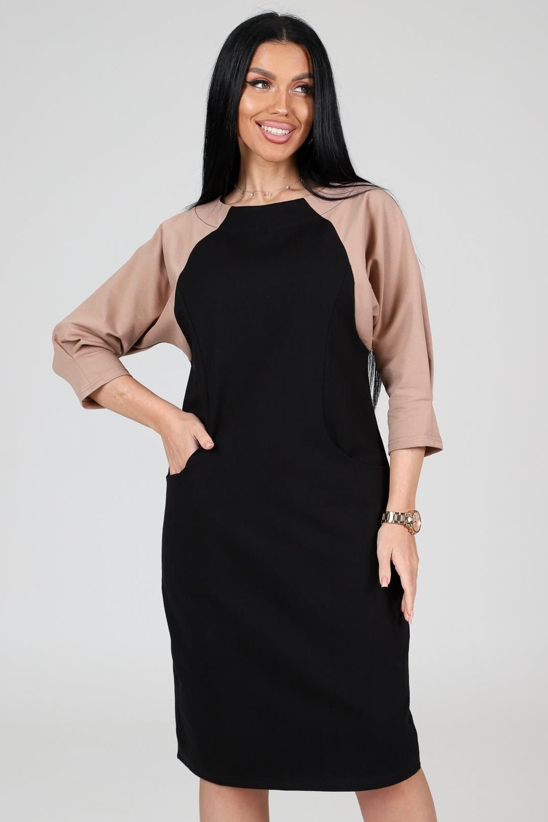 Платье чёрное из футера с карманамиАртикул: Capriz-D1800006206 Вокс-платье бежевый -