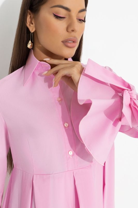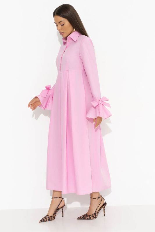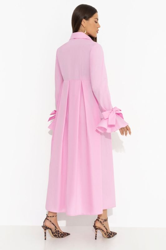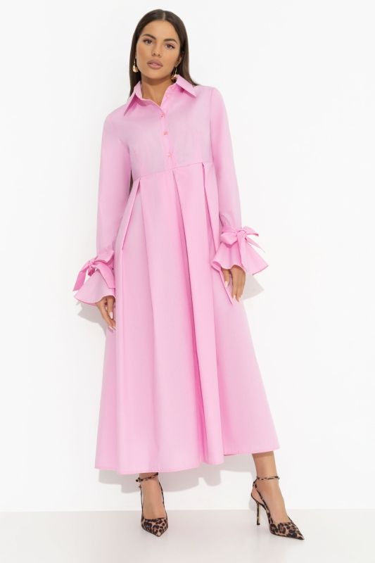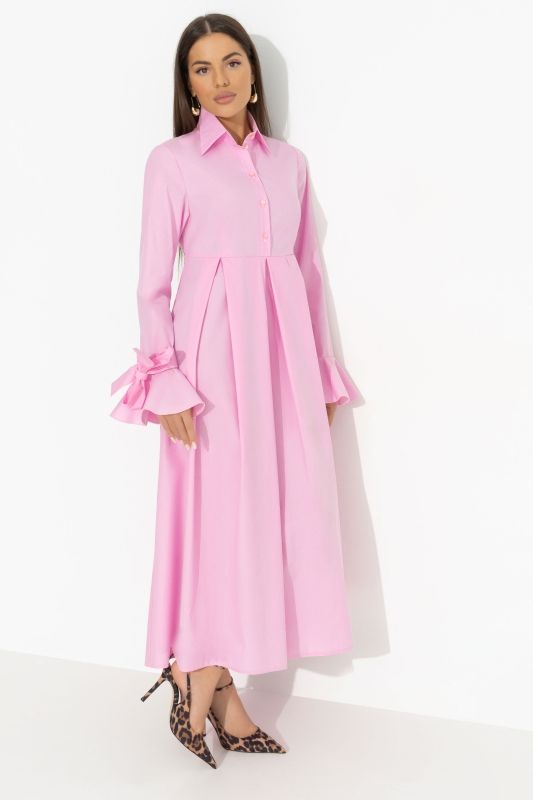 Платье длинное розовое с завышенной линией талии от бренда Charutti. Модель свободного силуэта, выполнена из рубашечнй ткани . Верх имитирует крой рубашки. Низ – большой объем ткани с защипами, создающими дополнительный объем юбки. Рукава дополнены воланами с завязками. В этом платье вы будете королевой вечера!