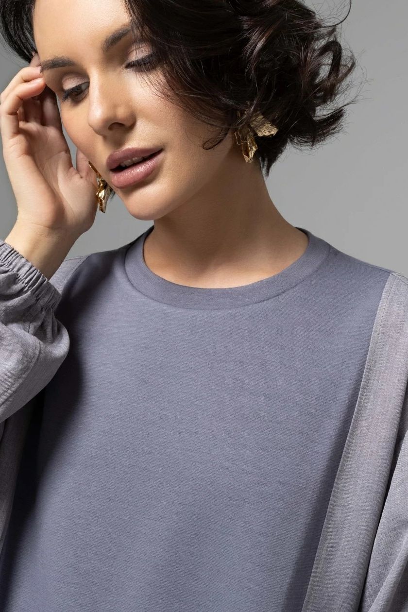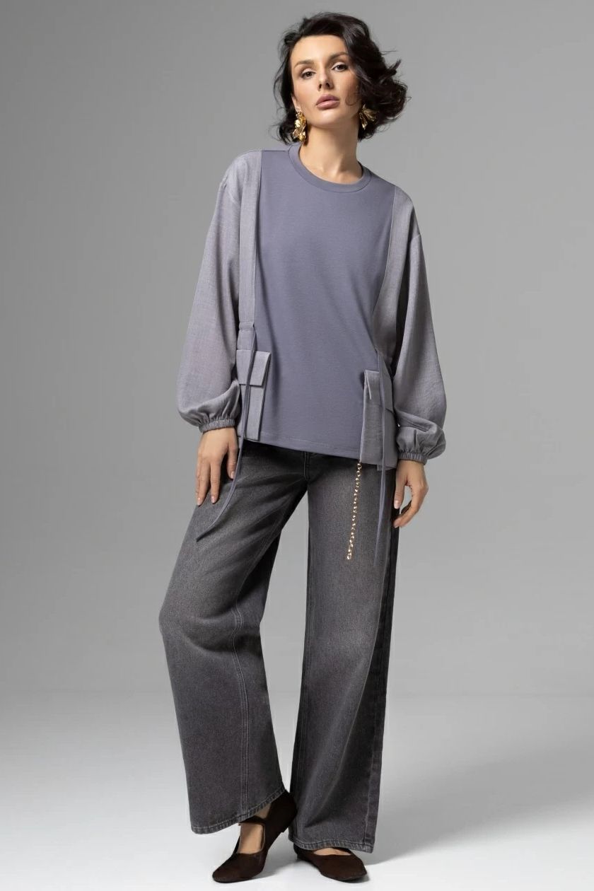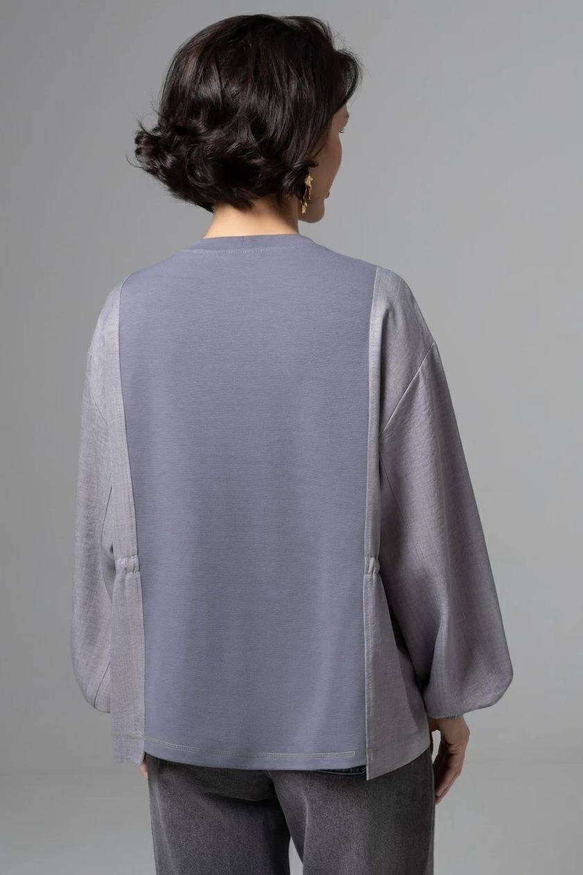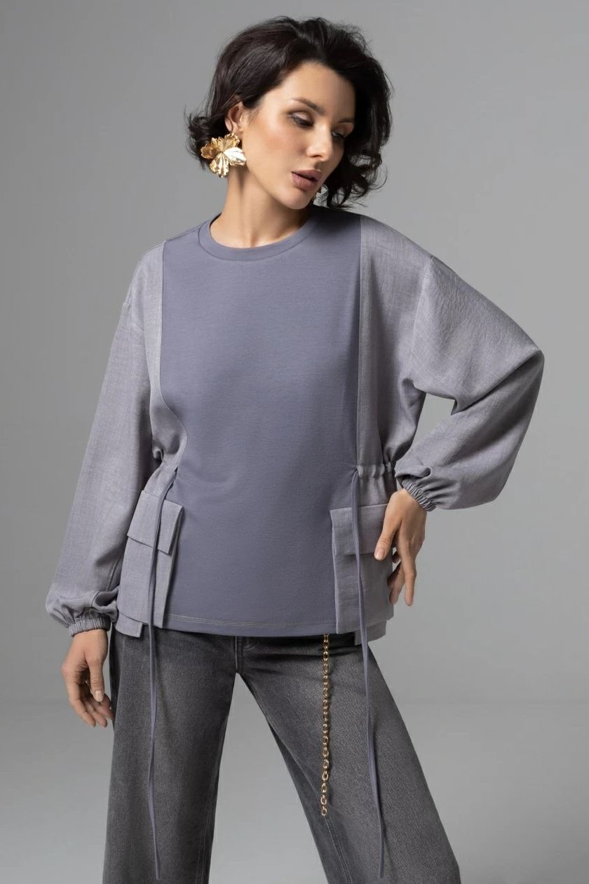 Свитшот комбинированный серый от компании Charutti. Модель прямого силуэта, выполнена из трикотажа и плательной ткани. Круглый вырез горловины. Втачные длинные рукава на резинке. Объемный рукав и завязки по бокам создают лёгкий намек на подиумный крой, но без перегруза – в этом свитшоте вы можете и вести переговоры, и улетать на выходные гулять у моря. Изделие с объёмными карманами, талия регулируется. Идеальный выбор на каждый день.