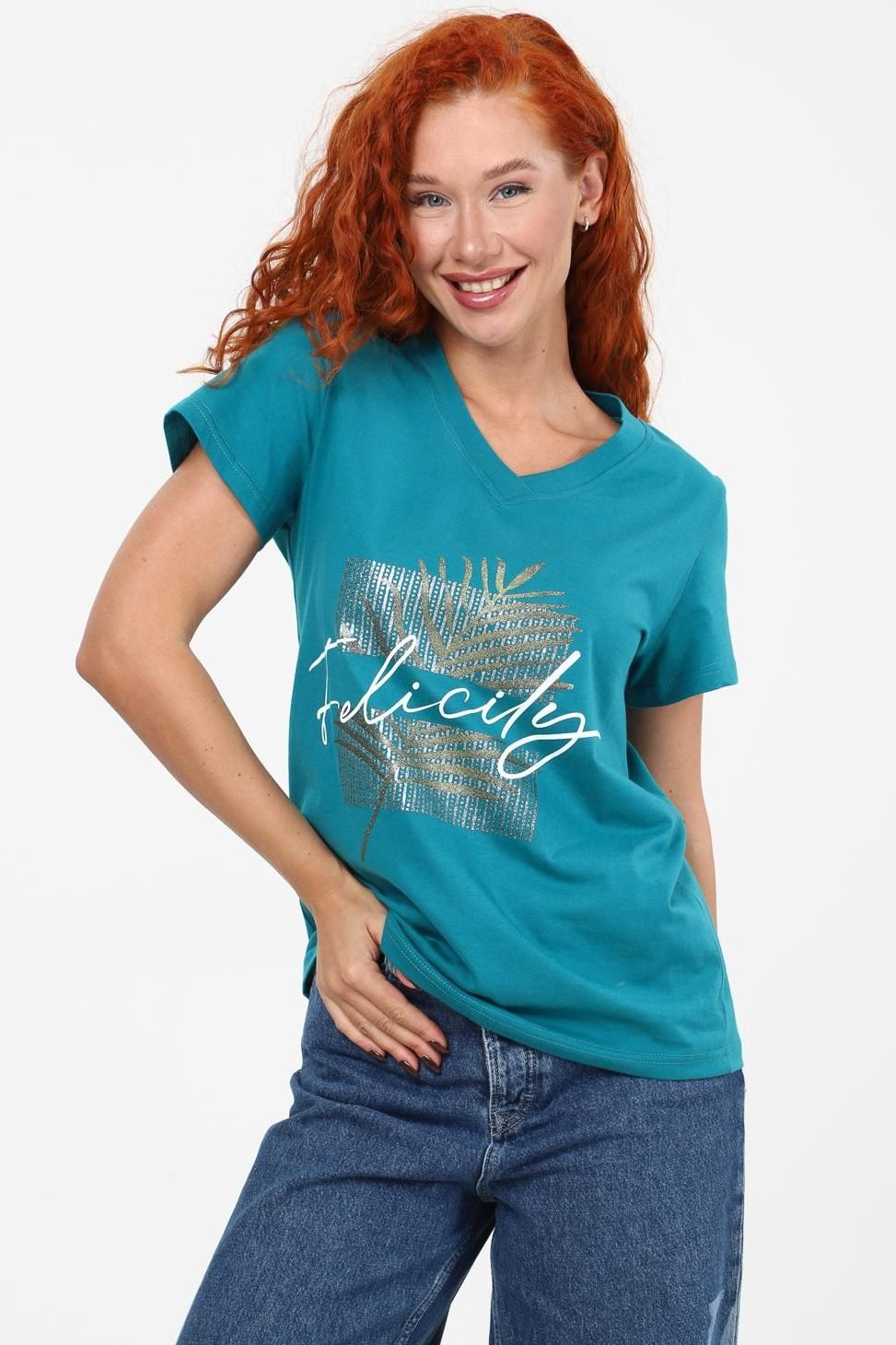 Футболка трикотажная цвета петрольАртикул: Capriz-D1800006098 Колеус-футболка петроль -