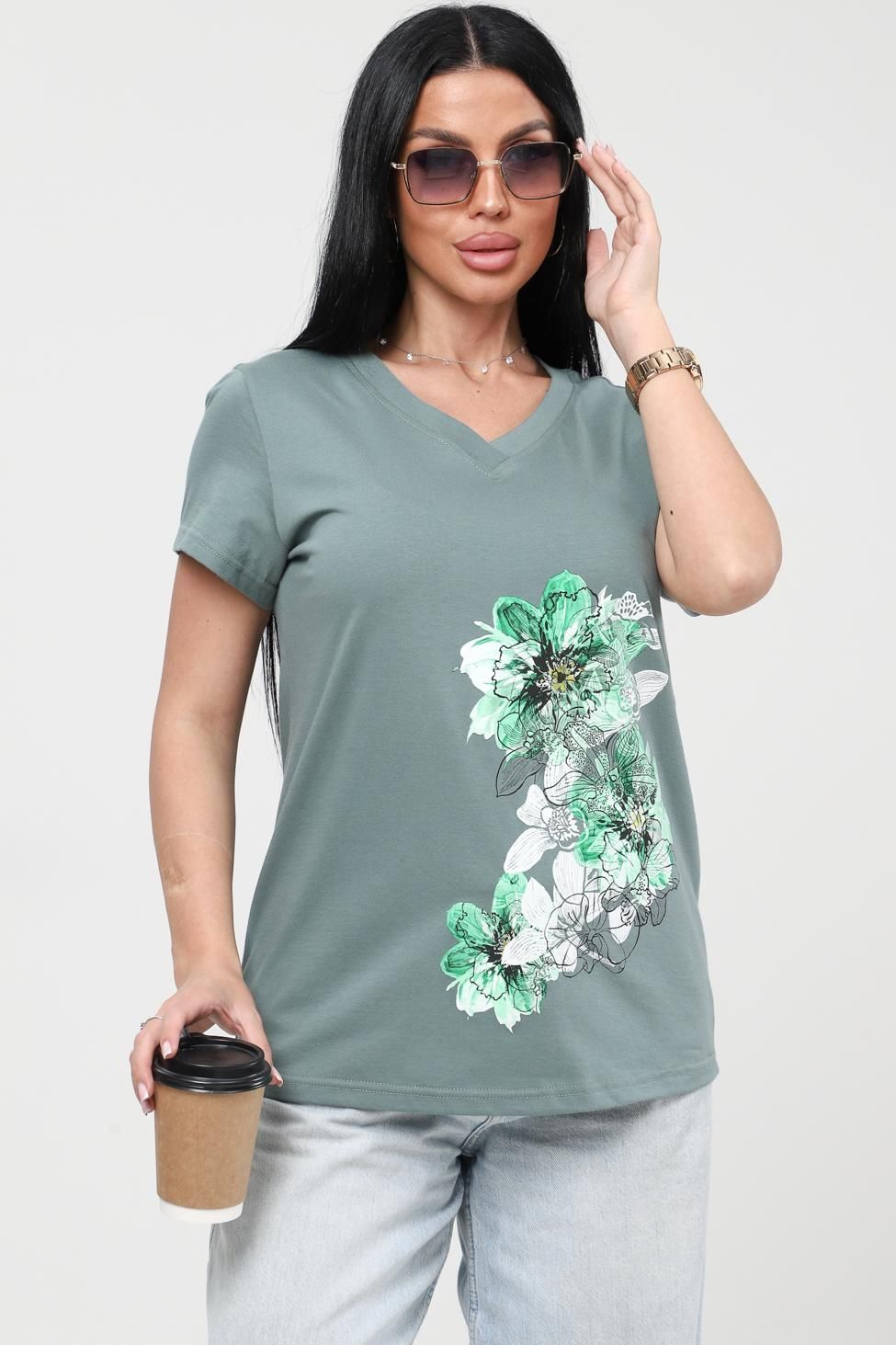 Футболка трикотажная хаки с принтомАртикул: Capriz-D1800006096 Вейгела-футболка хаки -