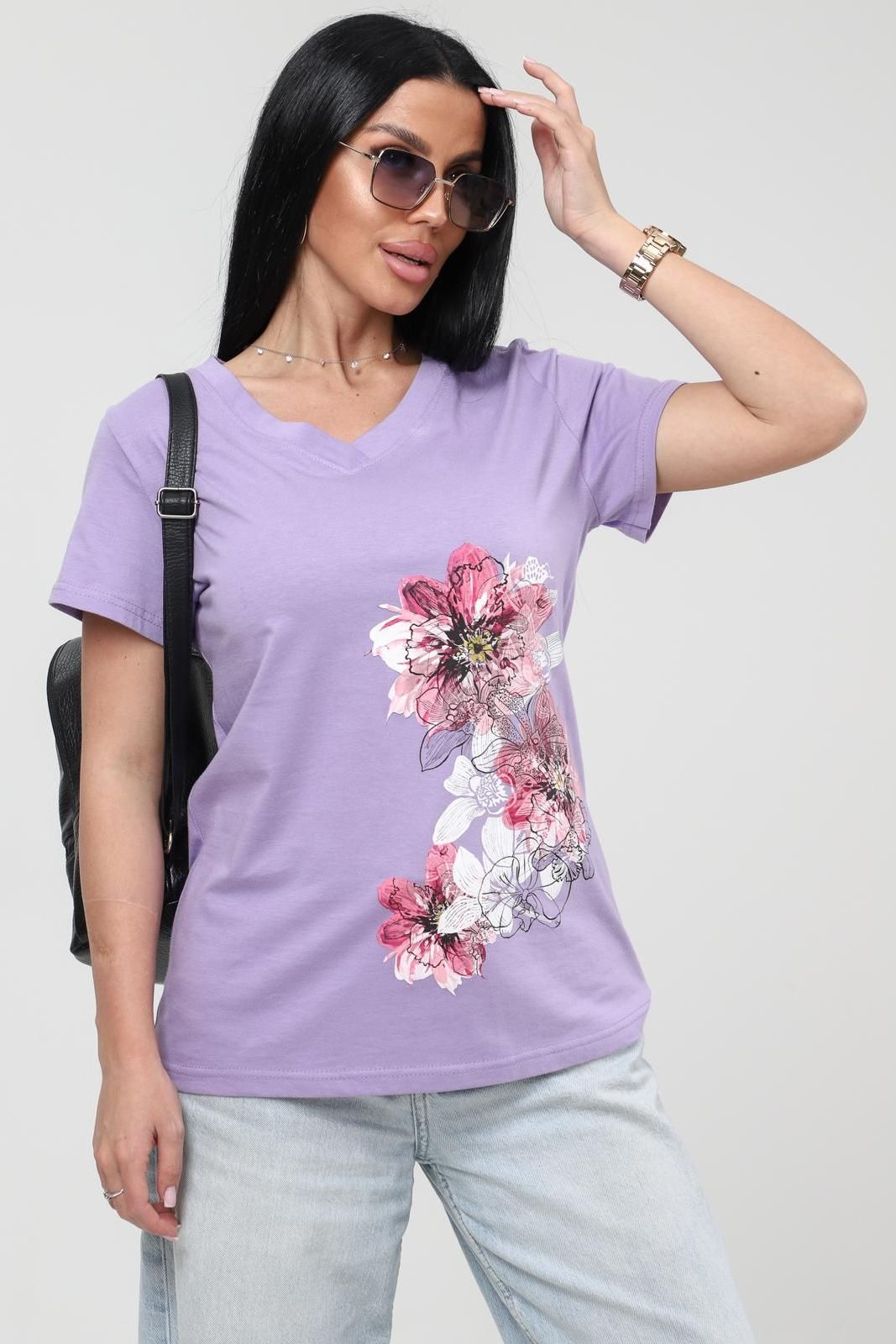 Футболка трикотажная сиреневого цвета с принтомАртикул: Capriz-D1800006096 Вейгела-футболка сиреневый -