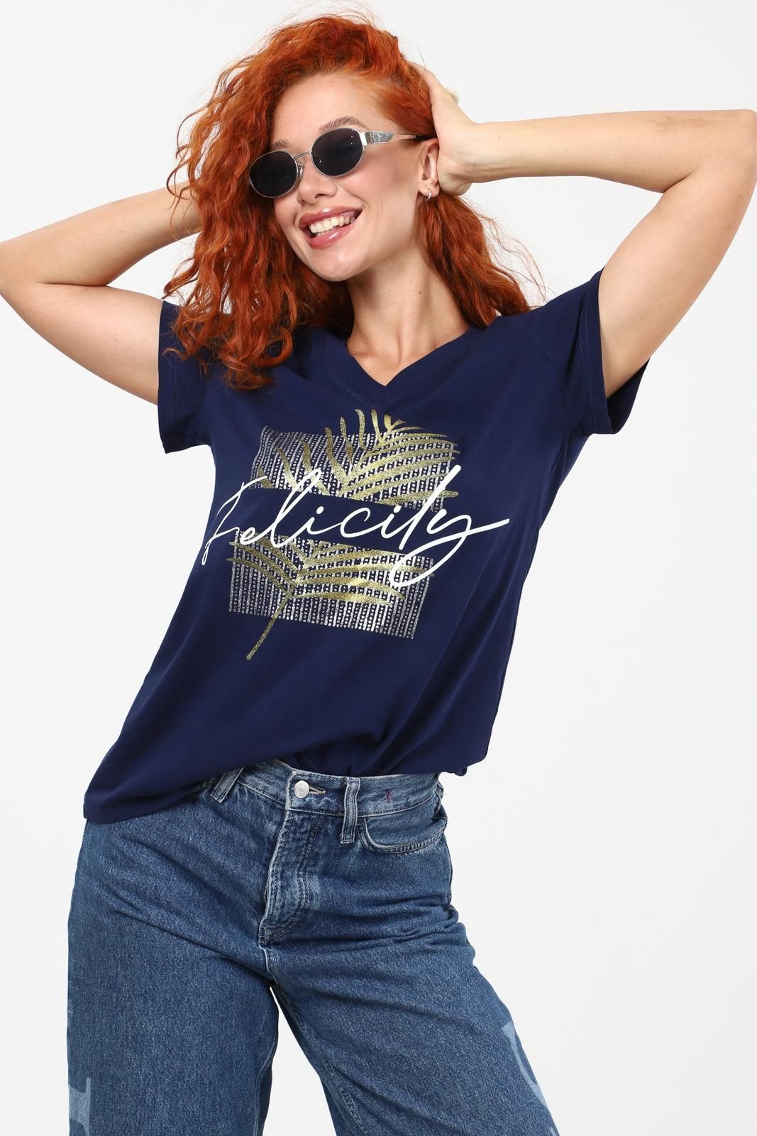 Футболка трикотажная тёмно-синего цветаАртикул: Capriz-D1800006233 Джовита-футболка темно-синий -