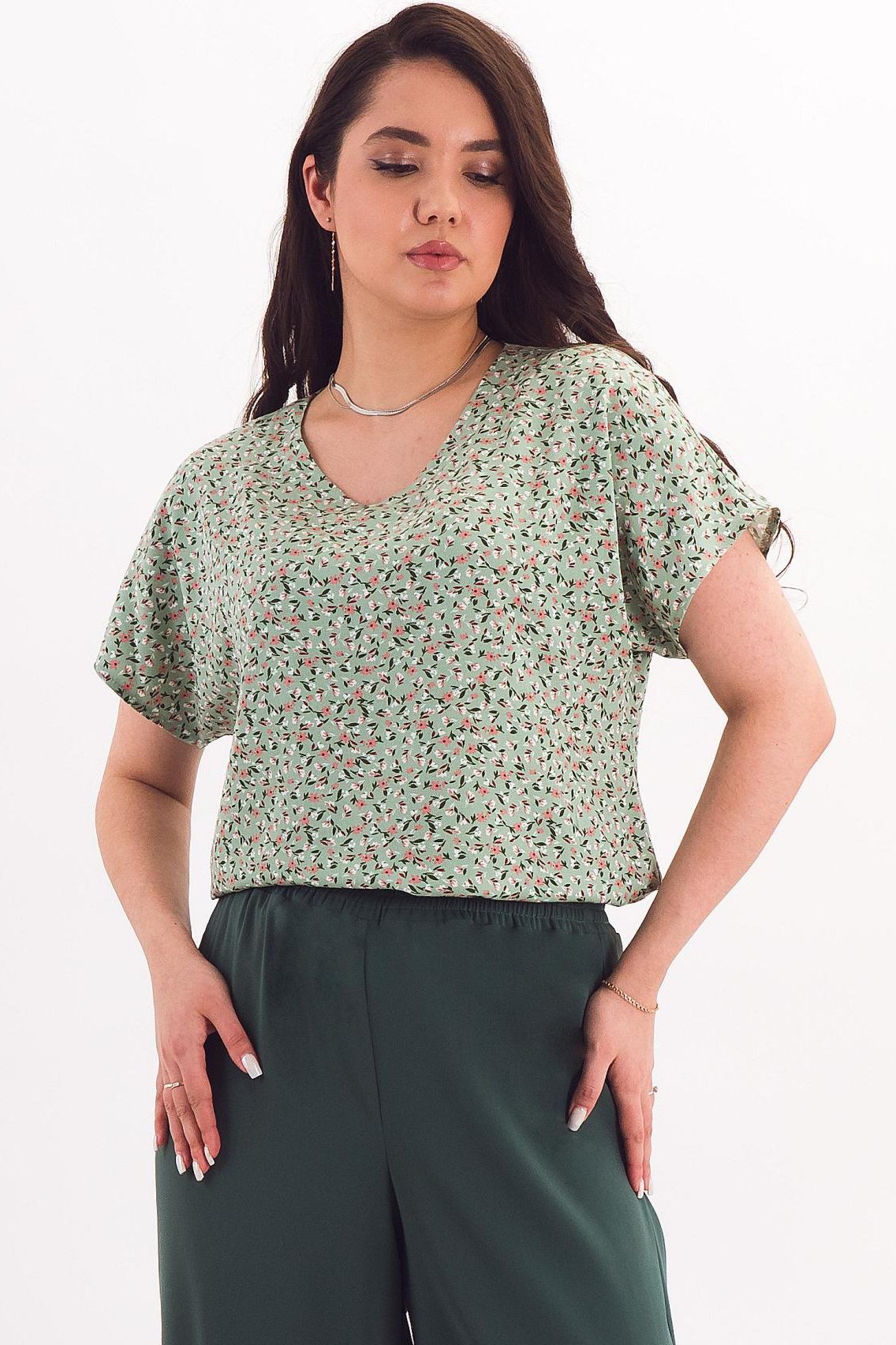 Блузка зелёная в горошекАртикул: Taiga-Б15402-50М -