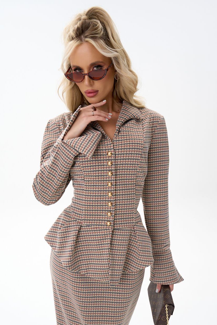 Жакет в клетку с баскойАртикул: Za-Шелли -